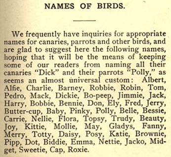 Feathered Pets:A Treatise on the Food, Breeding, and Care of Canaries, Parrots and Other Cage Birdsby Chas. N. Page©1898, Published by the Author. |